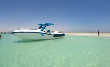 Sail privately to Orange Bay Hurghada by speed boat. Crystal waters, white sand, snorkeling, and pure freedom — your luxury Red Sea escape starts here.